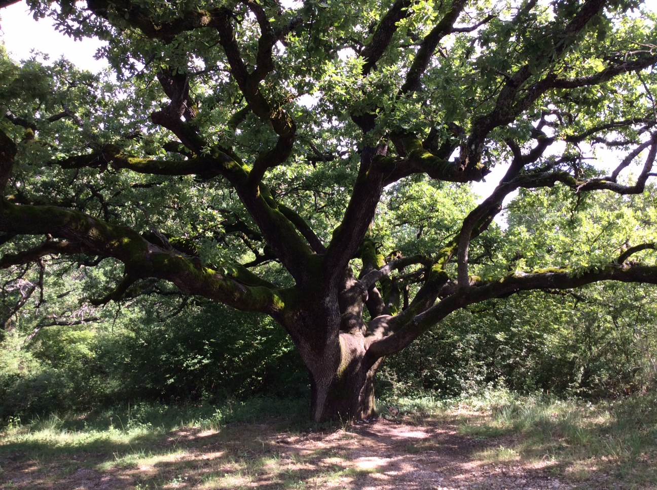 L’observation des arbres est un exercice à pratiquer régulièrement, il invite à profiter de la nature qui nous entoure, à en prendre des leçons de longévité, de grandeur et souvent de résilience. Cet arbre est un chêne pubescent Quercus pubescens Willd appelé aussi chêne blanc. C’est une espèce répandue de l’Asie occidentale à l’Europe méridionale qui affectionne dans tout le Midi de la France, les bois et coteaux secs, surtout calcaires.